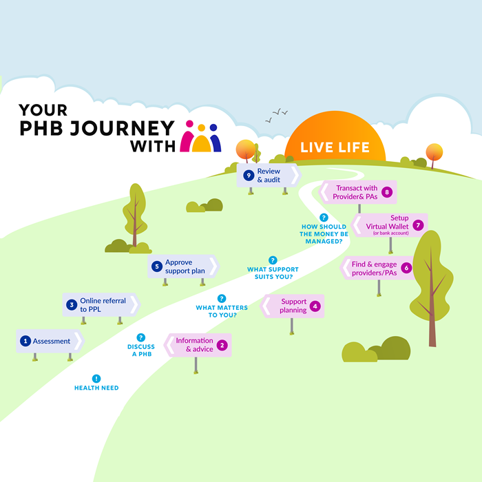 The first step on your PHB journey is a clinical assessment of your health needs. This is usually completed by a multi-disciplinary team and will result in a support plan being developed that outlines both your identified health needs and a plan as to how you intend to meet your health goals.